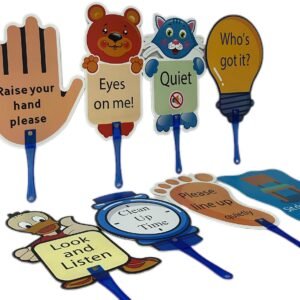 اشارات ولوحات تعليمية توجيهية للطلاب بالانجليزي ، لوحات توجيه الطلاب ، مسكات باليد تنظيمية للصف