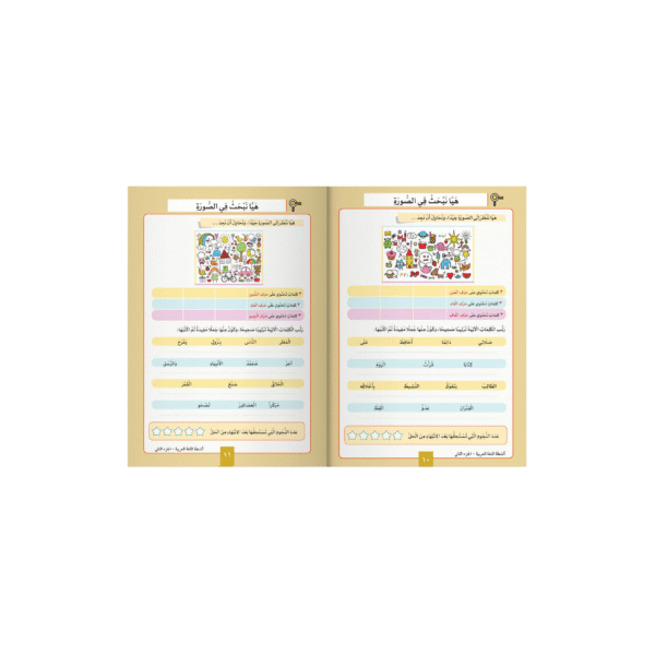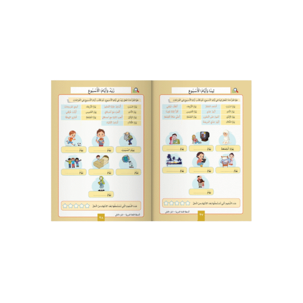 هو كتاب تعليمي ممتع للفئة العمرية من 4 إلى 10 سنوات، يجمع بين التعلم واللعب من خلال أنشطة تفاعلية متنوعة مثل ربط الصور بالأيام، تصنيف المفردات، واكتشاف الكلمات. يتميز بتصميم جذاب ورسوم ملونة تحفّز الطفل على المشاركة، كما يتيح تقييم الأداء بنظام النجوم لتعزيز الثقة بالنفس. يُعد هذا الكتاب أداة مثالية لتقوية اللغة العربية في التعليم المنزلي أو المدرسي بطريقة بسيطة وشيقة.