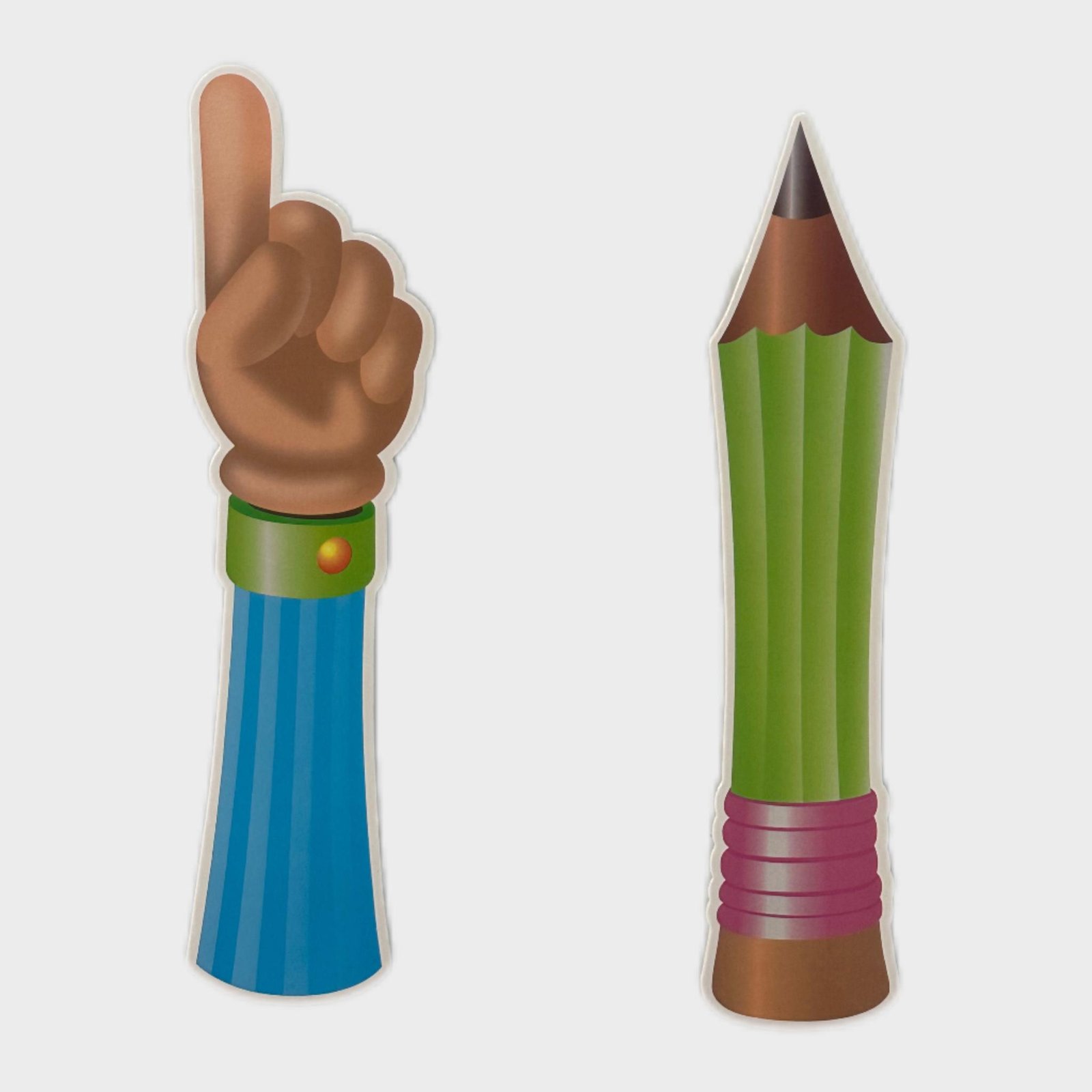 تصميم تعليمي مميز يحتوي على أشكال إرشادية، مثل يد تشير للأعلى وقلم كبير.