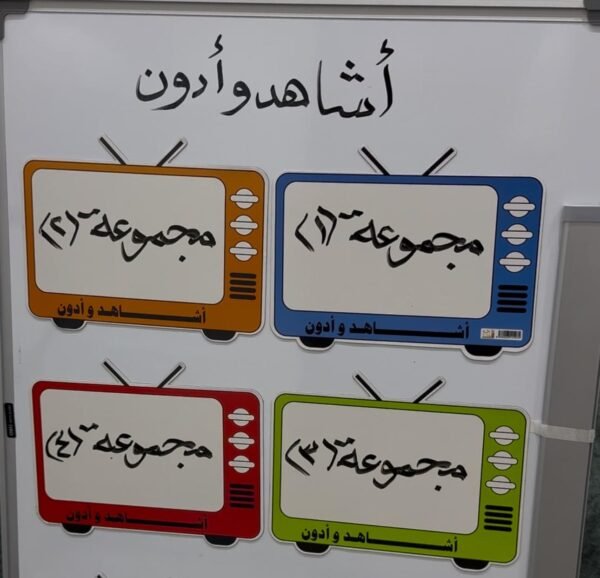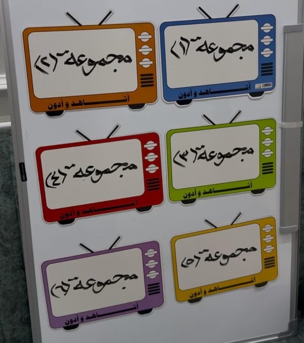 مجموعة مكونة من 6 تلفازات بألوان مميزة، مصممة بشكل جذاب، ومزودة بخاصية المغناطيس للتثبيت على السبورة. يكتب في شاشة كل تلفاز محتوى أو نشاط تعليمي لتشجيع الطلاب على المشاهدة والتفاعل.