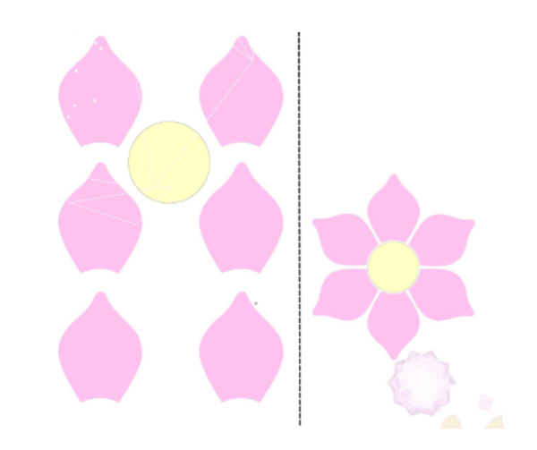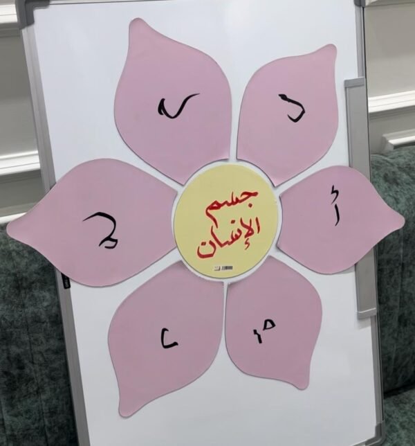 يتم توزيع البتلات حول الدائرة، وكل بتلة تحمل معلومة مرتبطة بالفكرة الرئيسية (مثل تعريفات، أمثلة، أو عناصر مرتبطة بالدرس).