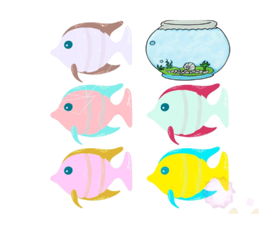 النشاط يعتمد على تقديم 6 سمكات ملونة ( أو ذات تصاميم مختلفة) مع حوض فارغ، حيث يقوم الأطفال بترتيب السمكات ووضعها في الحوض بناءً على شروط أو أسئلة تعليمية .