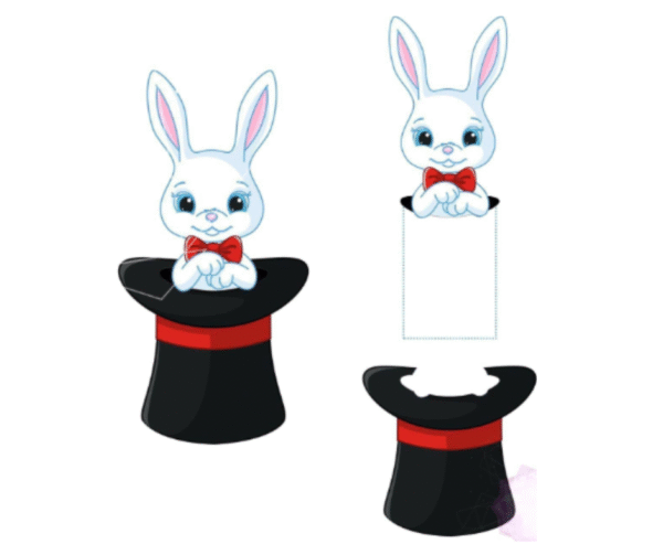 1. يتم وضع شخصية الأرنب داخل القبعة مع وجود مساحة خفية (كما في الصورة) لإخفاء سؤال أو فكرة.