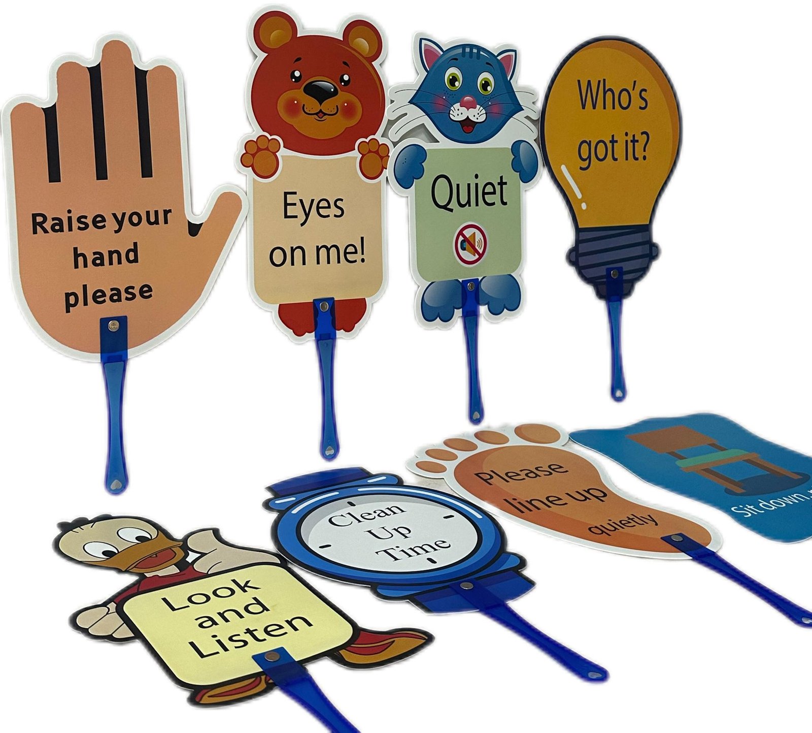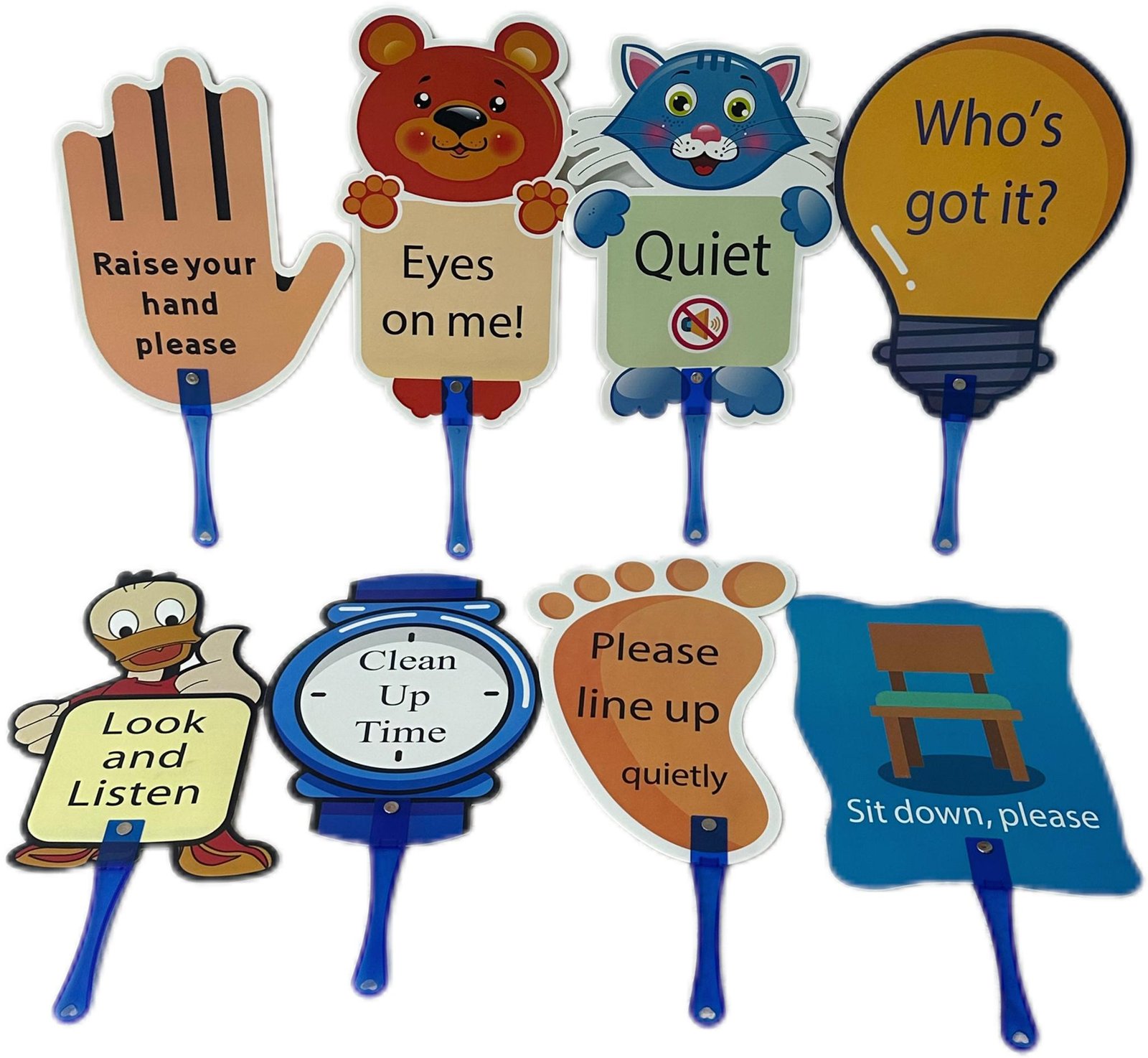 اشارات ولوحات تعليمية توجيهية للطلاب بالانجليزي ، لوحات توجيه الطلاب ، مسكات باليد تنظيمية للصف